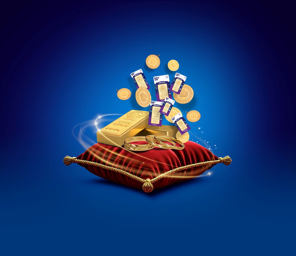 Bir tıkla Mobil Şube'den veya İnternet Şube'den altın siparişi verin, kapınıza gelene kadar sigortalı olarak, güvenli bir şekilde size teslim edelim. İster hesabınızdan ister kredi kartınız ile sipariş verebilirsiniz!