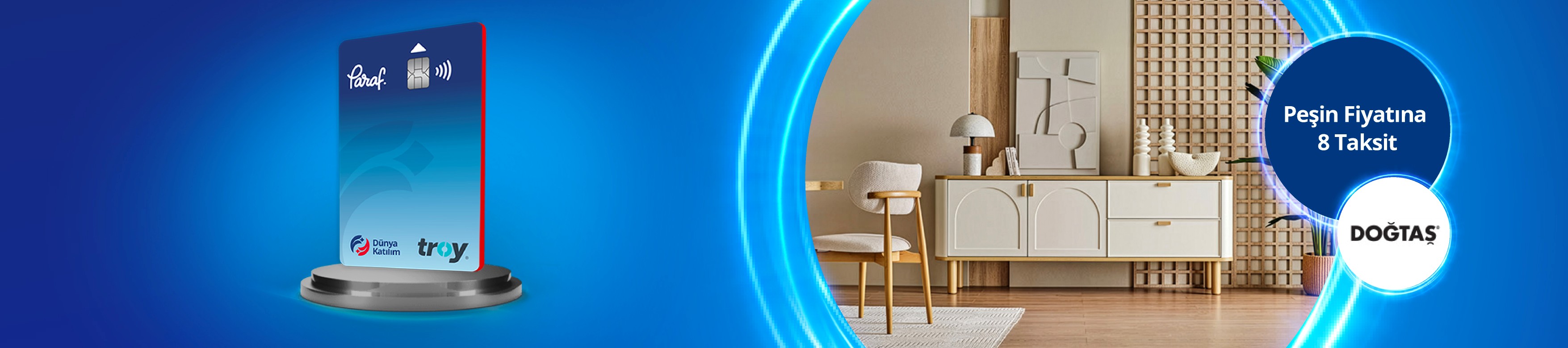 • Dünya Katılım Paraf Kartları ile Doğtaş mağazalarında ve ya dogtas.com.tr web sayfasından Paraf POS’larından yapacağınız alışverişlerde 8 taksit imkanı sağlanacaktır.