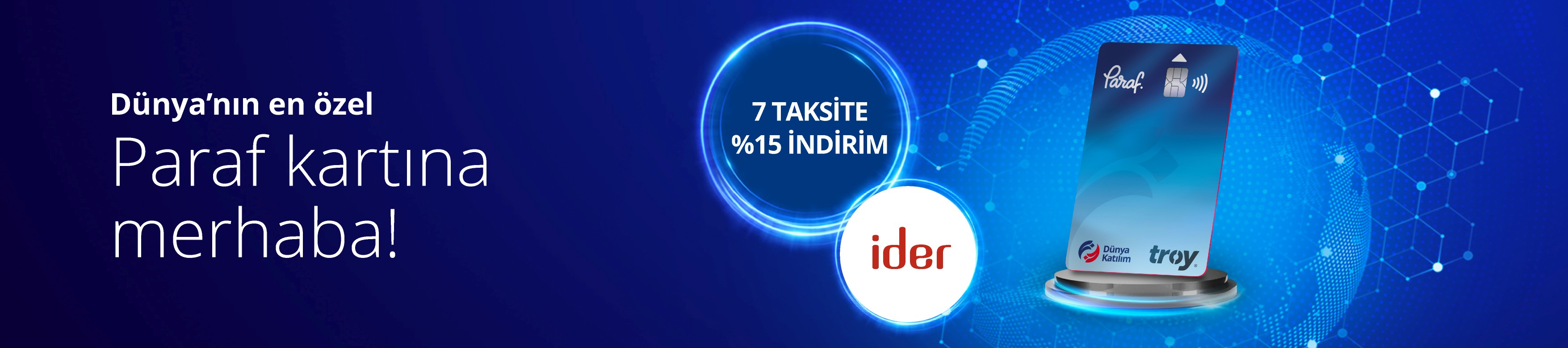 • Dünya Katılım Paraf kartları ile İder Mobilya mağazalarında Paraf POS’larından yapacağınız alışverişlerde 7 taksit imkanı sunulacak ve %15 indirim uygulanacaktır.